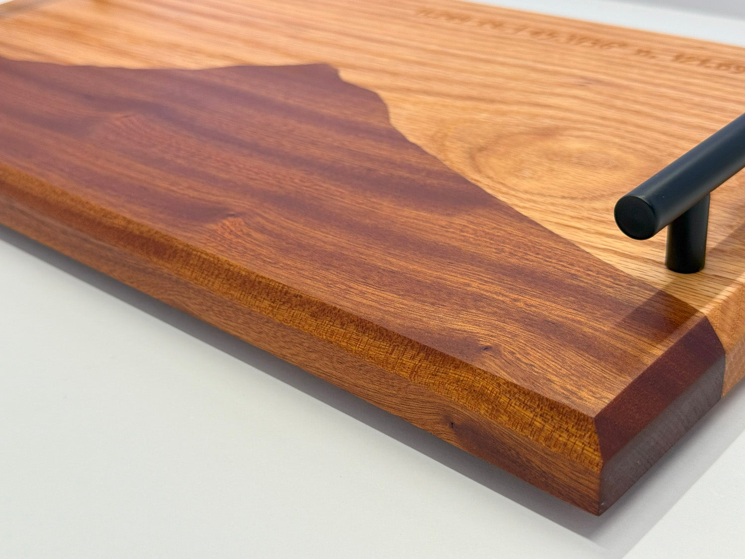 With its strong angles and bold contrast, the Mt. Hood Platter channels the striking terrain of the mountain it’s named for. Crafted from two hardwoods, it offers a natural yet polished base for charcuterie, fruit, or decor.